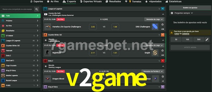 O v2game oferece uma grande seleção de opções de apostas em e-sports com probabilidades competitivas